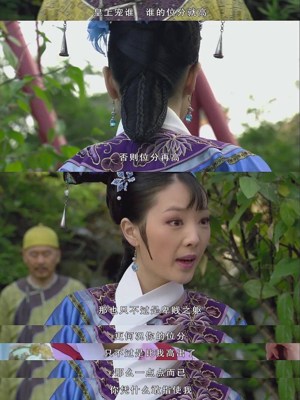 本来甄嬛气定神闲的听她说,毕竟位份在那里,修养也在那里。俗话说:只与同好争高下,不与傻瓜论短长。且听她叫唤吧。